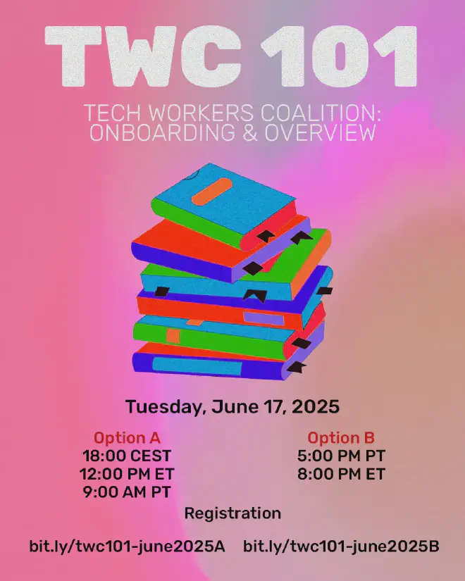 Would you like to learn more about the Tech Workers Coalition? Want to get more involved? Join the Tech Workers Coalition onboarding call on 17 June!